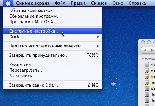 1. Откройте Яблочное меню (Apple menu) и выберите пункт Системные настройки... :