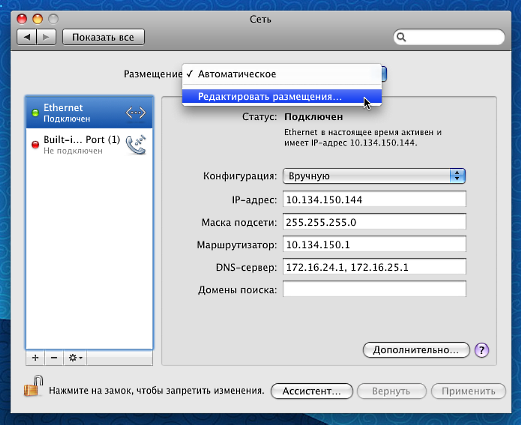 3. Количество интерфейсов зависит только от модели компьютера. Выбираем необходимый интерфейс для настройки. Для нас – это Встроенный Ethernet (Built-In Ethernet).