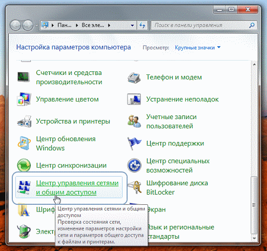 2. В окне "Панель управления" перейдите в "Центр управления сетями и общим доступом"
