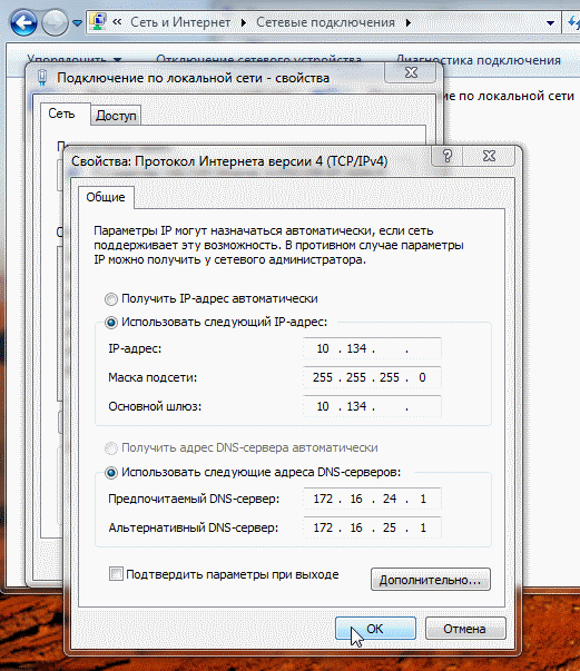 Пошаговая настройка сетевого подключения в Windows 71. Нажмите на кнопку
